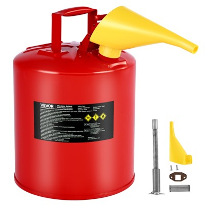 VEVOR Safety Gas Can, 5 Gallon Type I Red Safety Can for Gasoline with Stainless Steel Flame Arrester, Self-Closing Lid, and PE Funnel, Red