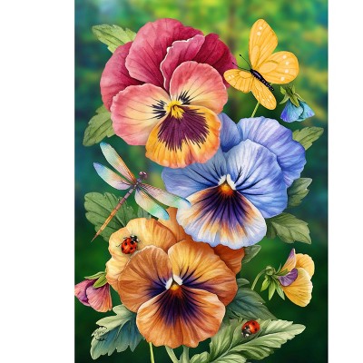 Briarwood Lane Spring House Flag 40x28 For Outdoor Pansy Trio For Spring House Flag
