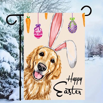 Happy Easter Garden Flag Burlap, Small Vertical Golden Retriever Dog with Rabbit Ear Garden Yard Flags for Easter Decoration 12x18in