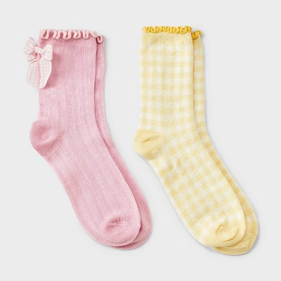 Women's 2pk Comfortwear Gingham Bow Demi Crew Socks - Auden™ - White/Pink
