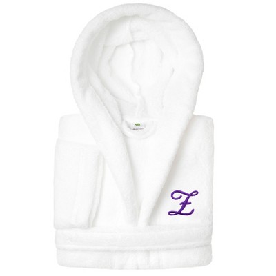 Personalized Linum Kids 100% Polyester SUPER PLUSH Double Brushed Hooded Bathrobe in Purple Script Font