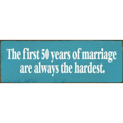 Slickblue Marriage Humor Wood Sign, 3.5x10 Solid Pine, Routed Slot & Shelf Edges, Multiple Colors