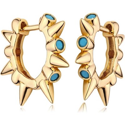 Girls' Small Turquoise Huggie Hoop Yellow Gold Flashed Sterling Silver Earrings - In Season Jewelry