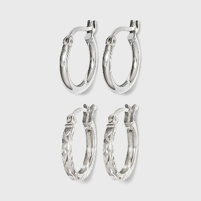 Hammered Metal Hoop Trio Earring Set 3pc - A New Day™ Silver: Nickel-Free Post, Women's Accessories, 0.98" Diameter