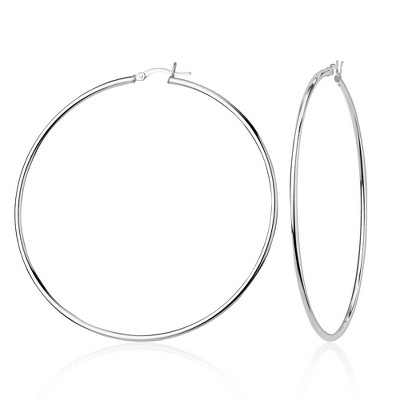 Bella Silver Sterling Silver 2x50mm High-Polished Hoop Earrings - Silver