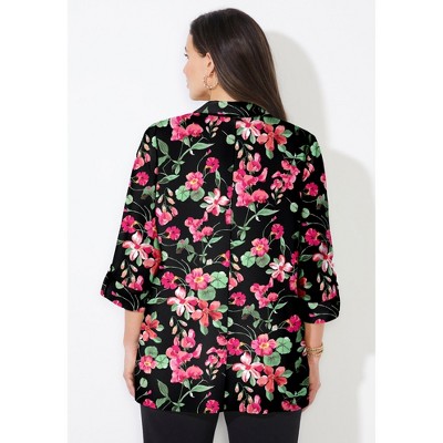 Woman Within 7-Day Layered-Look Embroidered Henley Tunic