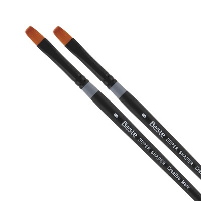 Creative Mark Beste Golden Taklon Super Shader #8 - 2 Pk Artist Brushes, Professional Watercolor Brushes, For Acrylic Painting, Short Handle, Sharp