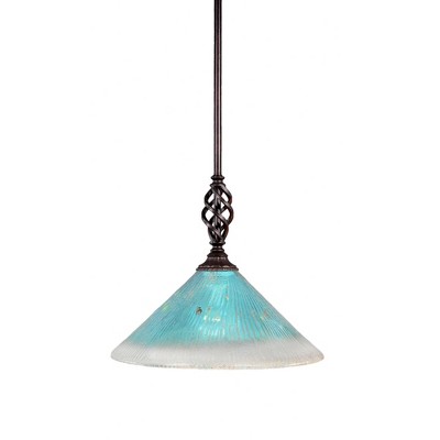 Toltec Lighting Elegante 1 - Light Pendant in Dark Granite with 12" Teal Crystal Shade