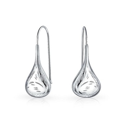 Bling Jewelry Carved Etched Puffed Pear Shaped Rain Drop Teardrop Earrings Fishhook Sterling Silver