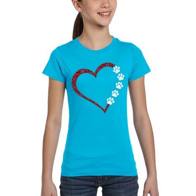 LA Pop Art Meow Heart - Girl's Word Art T-Shirt
