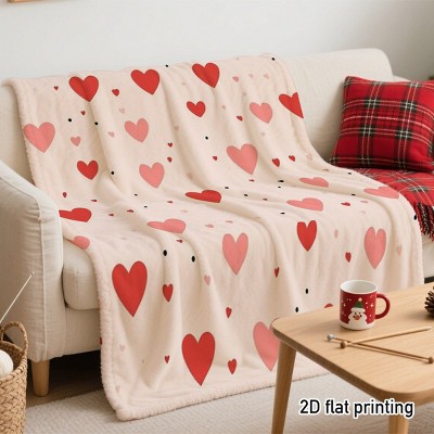 Lomsoe 1pc Valentine's Day Heart Pattern Throw Blanket, Pink Hearts, All-Season Cozy Blanket for Sofa, Bed.