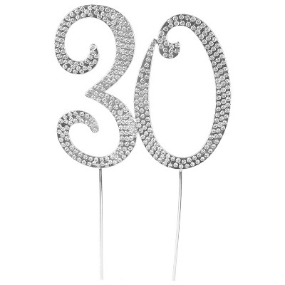 O'Creme Rhinestone Silver-Colored Number-30 Cake Topper 4 Inch