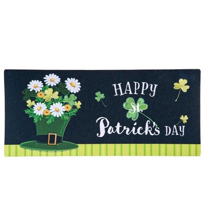 Evergreen 0.25 In Happy St. Patrick's Day Floral Hat Sassafras Switch Mat Saint Patrick Door Mat , Spring Decor Sassafras Switch Mat (1PC)