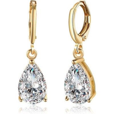 SmallRig CZ Teardrop Earrings for Women, 14K Gold Plated Elegant Wedding Jewelry Gift