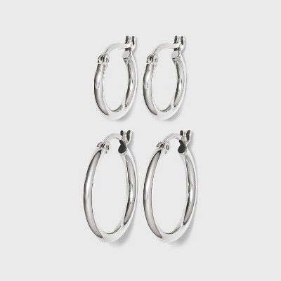 Sterling Silver Duo Click In Hoop Earring Set - Silver: Tarnish-Resistant, Nickel-Free, Shiny, Polished, Smooth Finish