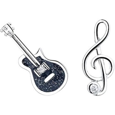 Asymmetric Guitar Earrings - Cubic Zirconia Music Note & Treble Clef Studs, Sweet Dainty Jewelry
