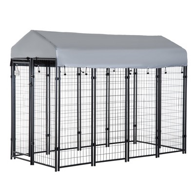 Pawhut Large Outdoor Dog Kennel Steel Fence with UV-Resistant Oxford Cloth Roof & Secure Lock