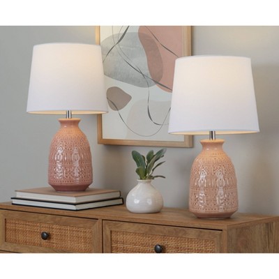 Aortzio 17"H Glass Table Lamps,Bedside Lamp with Ribbed Glass Base