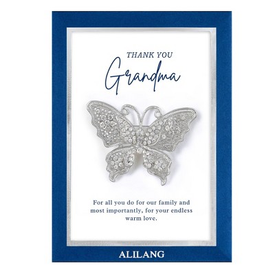 Alilang Clear Silver Butterfly Crystal Rhinestone Brooch Pin with Family or Friend Gift Message Card & Envelope Jewelry Gifts