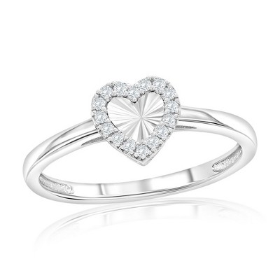 Bella Silver Sterling Silver, D-C Heart, CZ Border Ring - Silver - Size 8