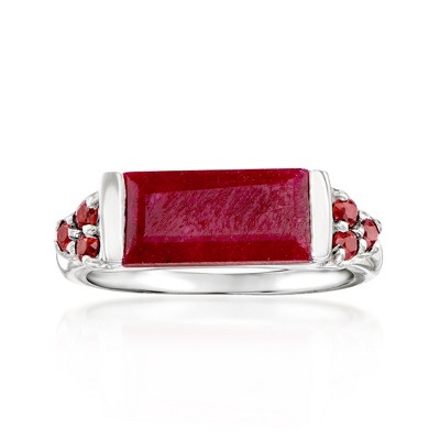 Ross-Simons 3.50 Carat Ruby and .10 ct. t.w. Garnet Ring in Sterling Silver