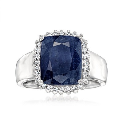 Ross-Simons 4.50 Carat Sapphire and .20 ct. t.w. White Topaz Ring in Sterling Silver