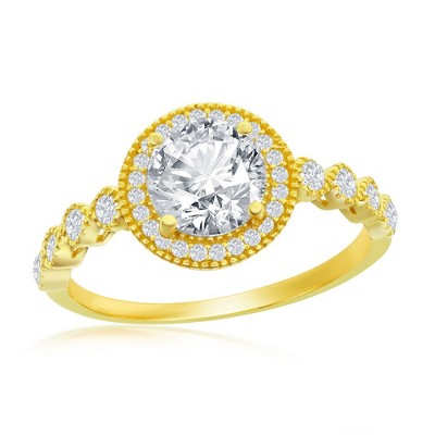 Bella Silver Sterling Silver Round Pave Halo CZ Engagement Ring - Available Sizes: 9 , 8 , 7 , 6