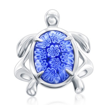 Millefiori di Murano Sterling Silver, Venetian Murano Turtle Ring - Blue - Available Sizes: 9 , 8 , 7