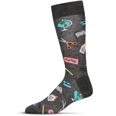 Memoi Men's Embroidered Games Bamboo Crew Socks Dark Gray Heather 10-13