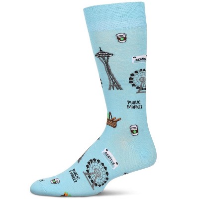 Memoi Men's Seattle Bamboo Crew Socks Blue Topaz 10-13