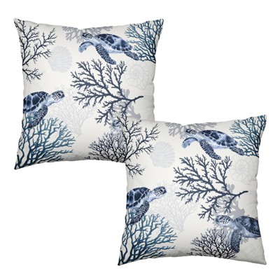 Nautical Coastal Outdoor Pillow Covers 18x18 Set of 2 Ocean Coral Sea Turtle Seashell Throw Pillow Covers