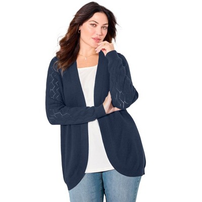 Woman Within Jacquard Open Front Duster Sweater