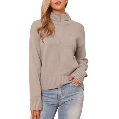INSPIRE CHIC Women's Fall Winter Turtleneck Long Sleeve Knit Pocket Casual Pullover Sweaters