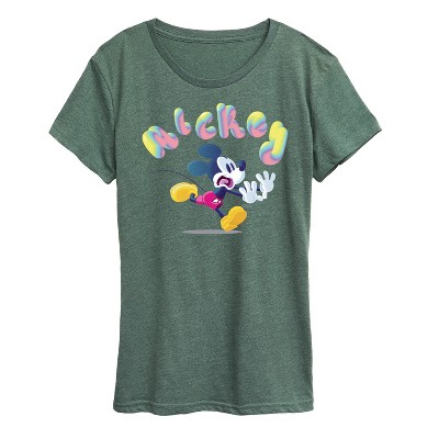 Women's - Disney - Mickey Green Rainbow Short Sleeve Graphic T-Shirt
