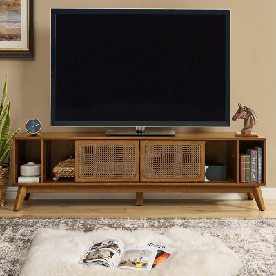MOEPISY Mid Century Morden Walnut TV Stand With Extendable Table Walnut