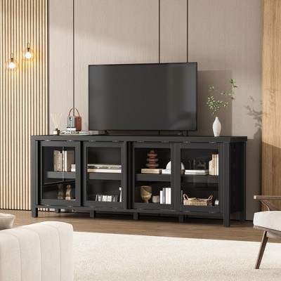 69.6" Contemporary TV Stand with Fluted Glass Doors and Adjustable Shelves