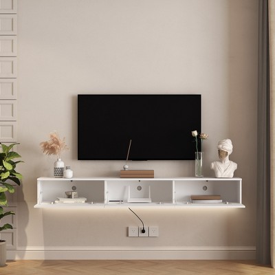 Gulches Floating TV Stand Wall Mounted 69 Inch Modern TV Cabinet Entertainment Center up to 65 Inch TV White