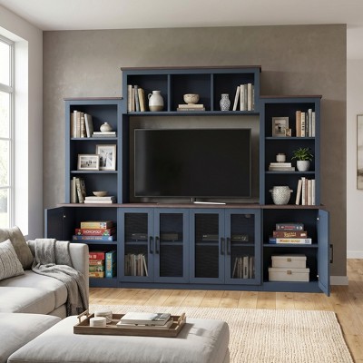 JVNOXK Wall-Mounted Entertainment Center, featuring spacious storage cabinets, a modern-style TV stand and media center, blue