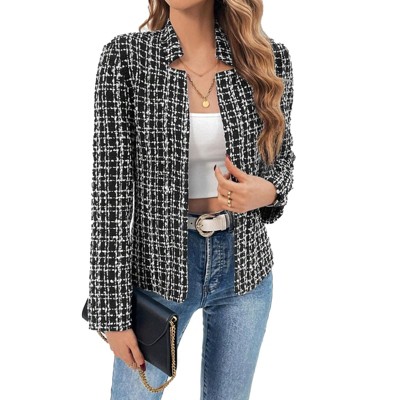 Clearlove Women's Plaid Notch Lapel Single Button Tweed Blazer Casual Office Lightweight Open Front Jacket Versatile