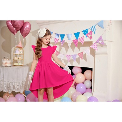 Arshiner Girls Summer Dress Tween Flutter Sleeve High Low Formal Dresses for Wedding Party with Pocket