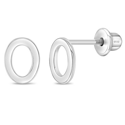 Girls' Polished Initial Letter Initial Screw Back Sterling Silver Earrings - In Season Jewelry