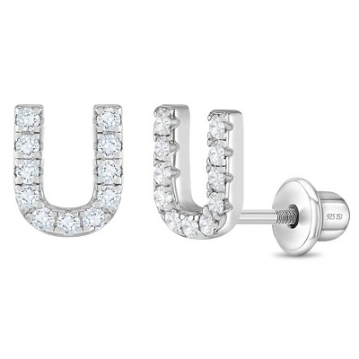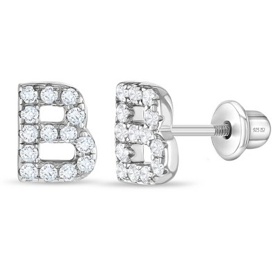 Girl's Cubic Zirconia Letter Initial Screw Back Sterling Silver Earrings - In Season Jewelry