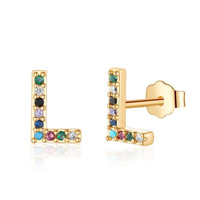Guili Sterling Silver Gold Plated Half Hoop Earrings with Colored Cubic Zirconia – A Stylish and Elegant Design That Adds a Bold Touch to Any Look
