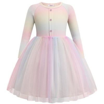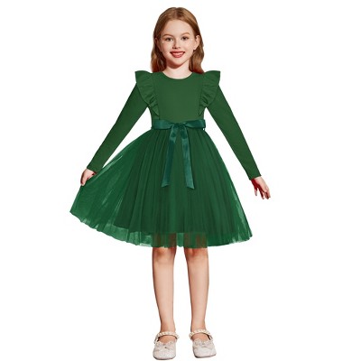 Arshiner Toddler Tutu Dress Little Girls Long Sleeve Casual Tulle Kids Fall Winter Outfits with Ribbon