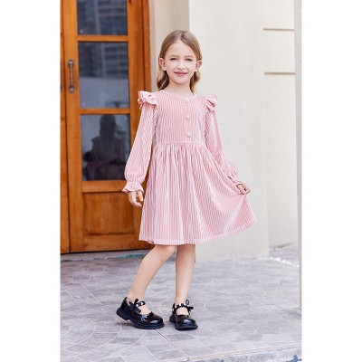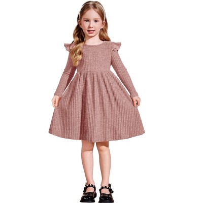 Arshiner Toddler Girl Dress Baby Girls Knitted Ruffle Sleeve Pocket Dresses A-Line Flared Fall Winter Clothes for 2-8 Years