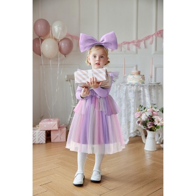 Arshiner Toddler Girls Tutu Dress Princess Tiered Tulle Long Sleeve Bowknot Birthday Party Dresses