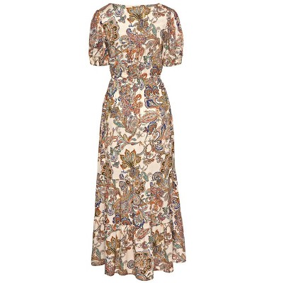 Women's Paisley Puff Sleeve Maxi Dress - LASCANA