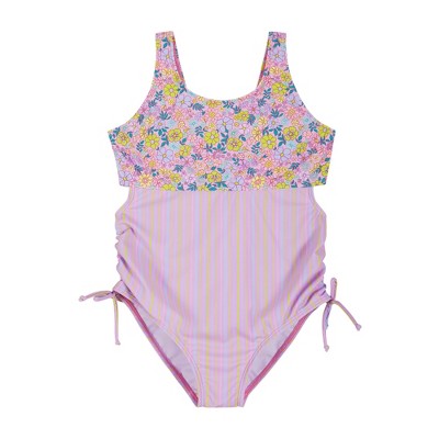 Andy & Evan Kids Floral Print/Striped One Pc Swimsuit w/Side Cutouts