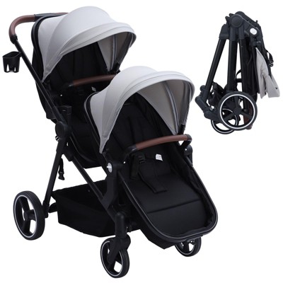 Double Track Tandem Stroller, Foldable Bassinet Pram for Infant and Toddler, Multi-Position Reversible Pushchair with Large Storage Basket