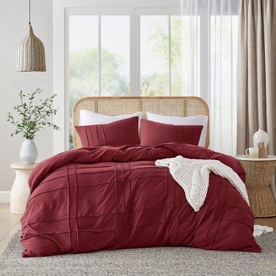 3Pcs Comforter set Pinch Pleat Comforter for All Seasons, Grid Pattern Lightweight Bedding Set, Solid Chic Vintage Style Farmhouse Bed Comforter Sets